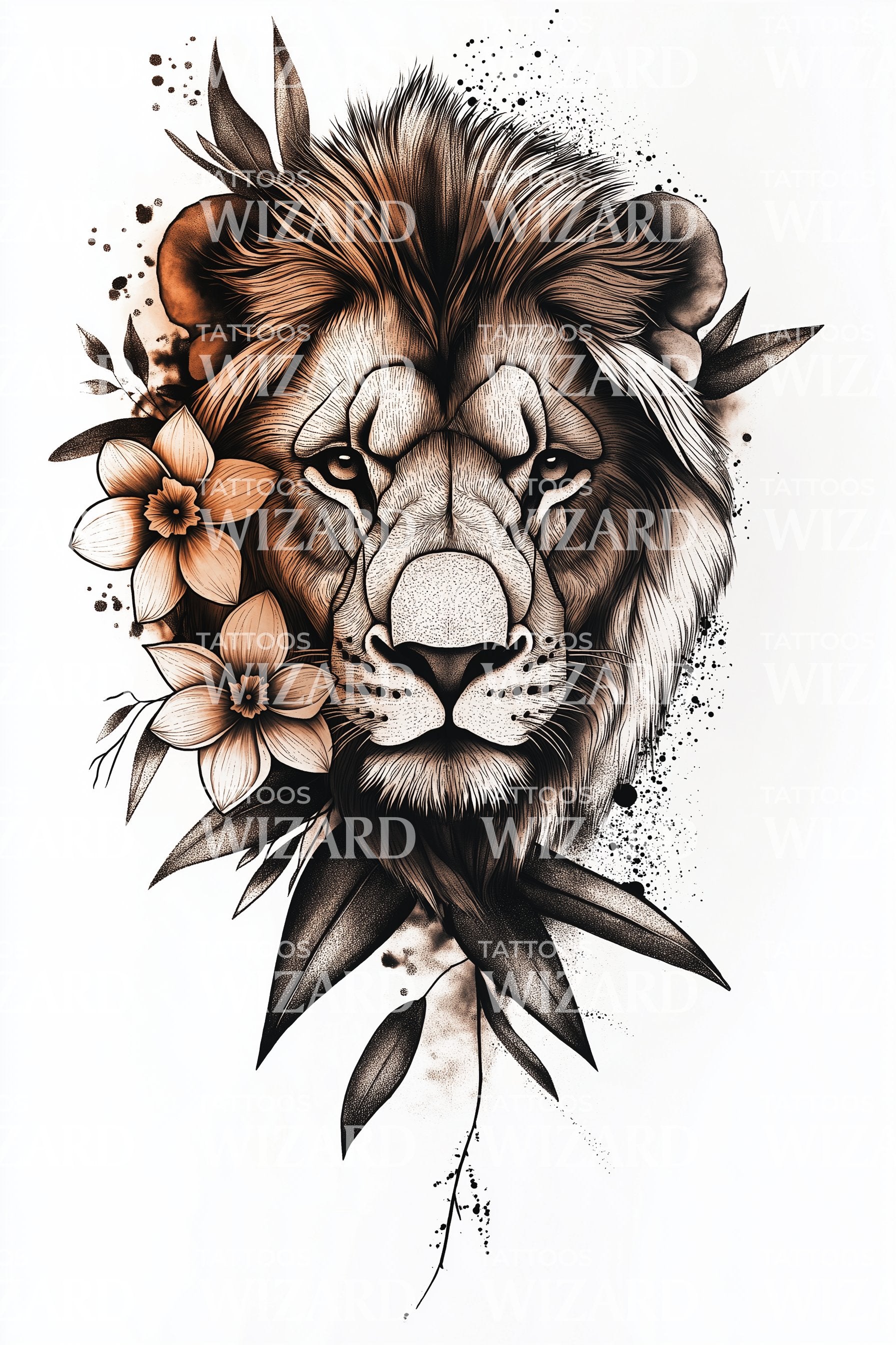 拥抱你狂野的一面,这款充满活力的插画风纹身设计展现了狮子的雄伟艺术,周围环绕着色彩斑斓的莲花。这件作品是力量与美丽的见证,是一抹大胆而生动的色彩,定能让你脱颖而出。