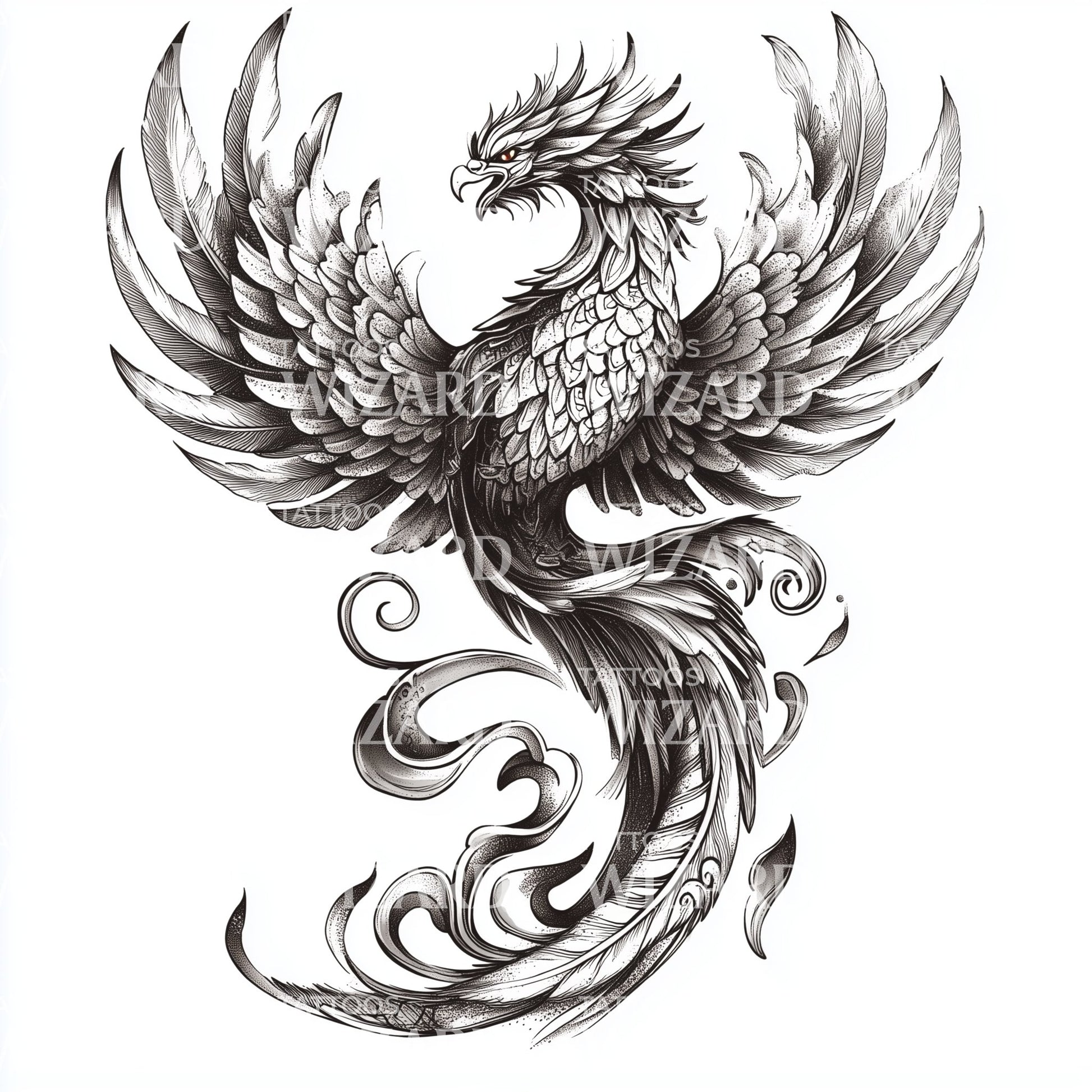 体验维京战士的神秘力量,这款凤凰纹身设计以细致的点刺技法呈现,象征着力量与再生。让维京凤凰的强烈精神激励你自己的人生斗争。这不仅仅是一款纹身,它是你战士精神的见证。