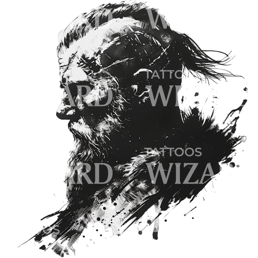 通过这个引人注目的黑灰色纹身设计,体现古代战士的精神。详细的草图将一个北欧风格的场景栩栩如生地呈现,展现了一位凶猛的维京神的面容。比约恩和埃里克的遗产在这个迷人的维兰德描绘中完美融合,证明了你的战士精神。