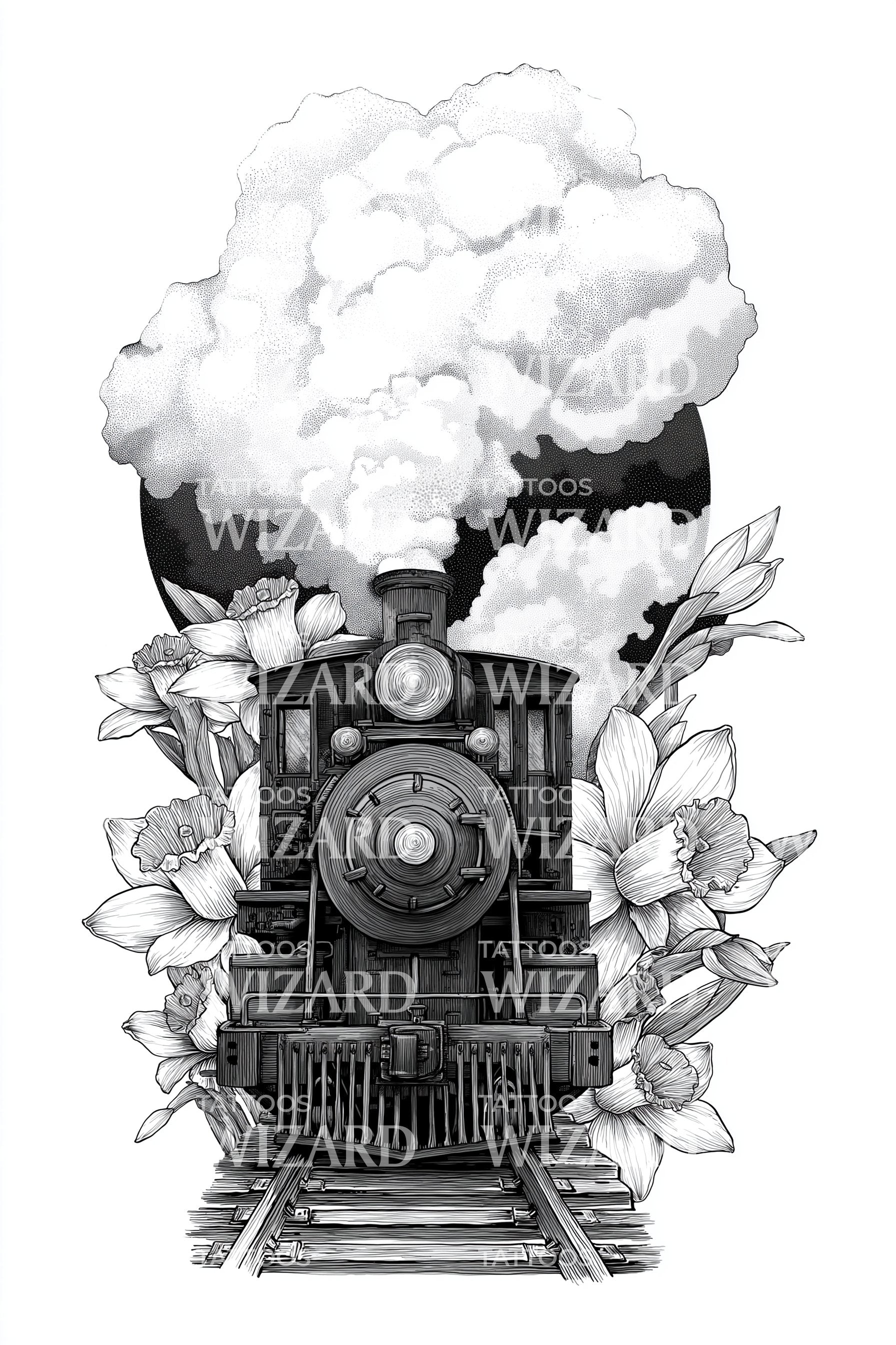 体验怀旧情怀,感受我们的复古火车纹身设计。以黑灰色调精心呈现,这幅逼真的作品捕捉了古董煤炭机车的原始力量。沉浸于蒸汽动力旅行的浪漫之中,这件永恒的身体艺术作品将其完美封存。
