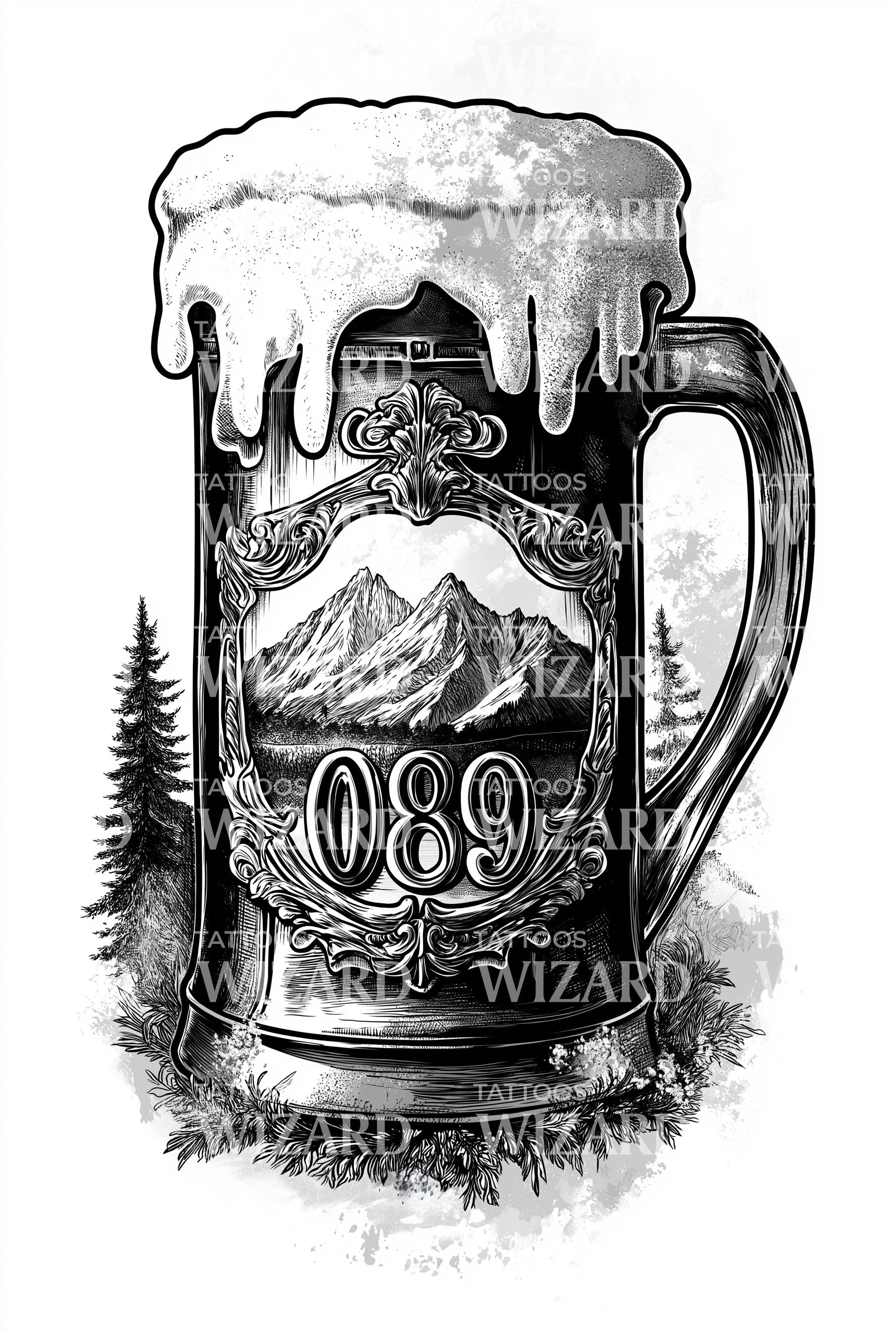 Munich 089 Vintage Beer Stein Tattoo Idea