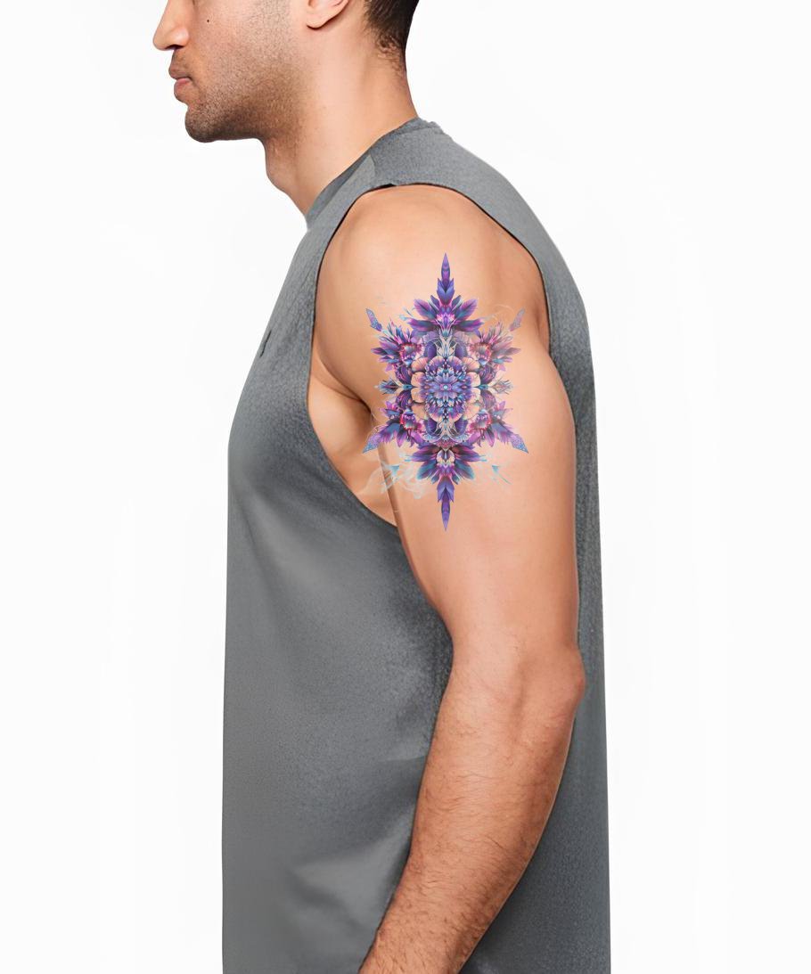 将对称的魔力融入您的身体艺术,这款紫罗兰曼陀罗纹身设计散发出和谐的气场,饰以精美的花卉图案。精湛的设计展现了宁静灵性的完美平衡,以引人注目的紫罗兰色调唤起神秘美感。非常适合所有曼陀罗爱好者。