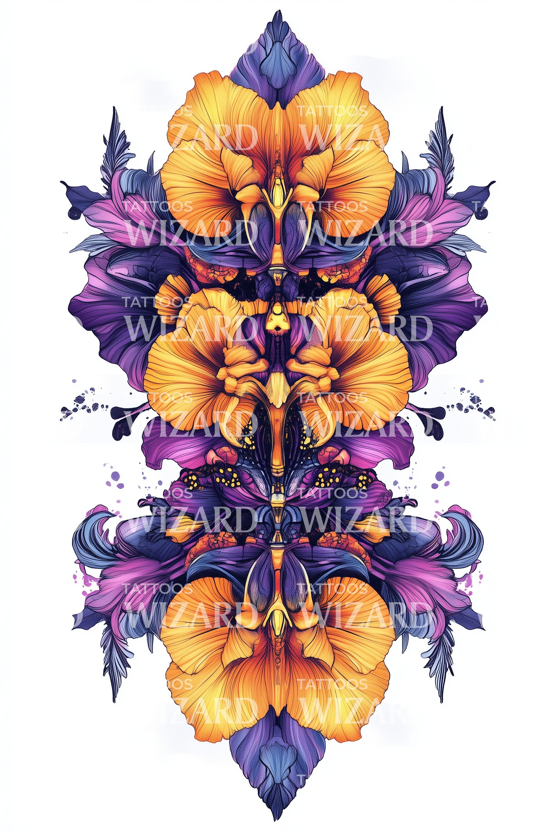 沉浸于这款令人惊叹的装饰性纹身设计的迷幻之美。传达出完美的对称,这件作品散发出迷人的神秘气息。受大自然启发的花卉图案与鲜艳的紫罗兰色调完美融合,为敢于与众不同的人士带来引人注目的风格宣言。