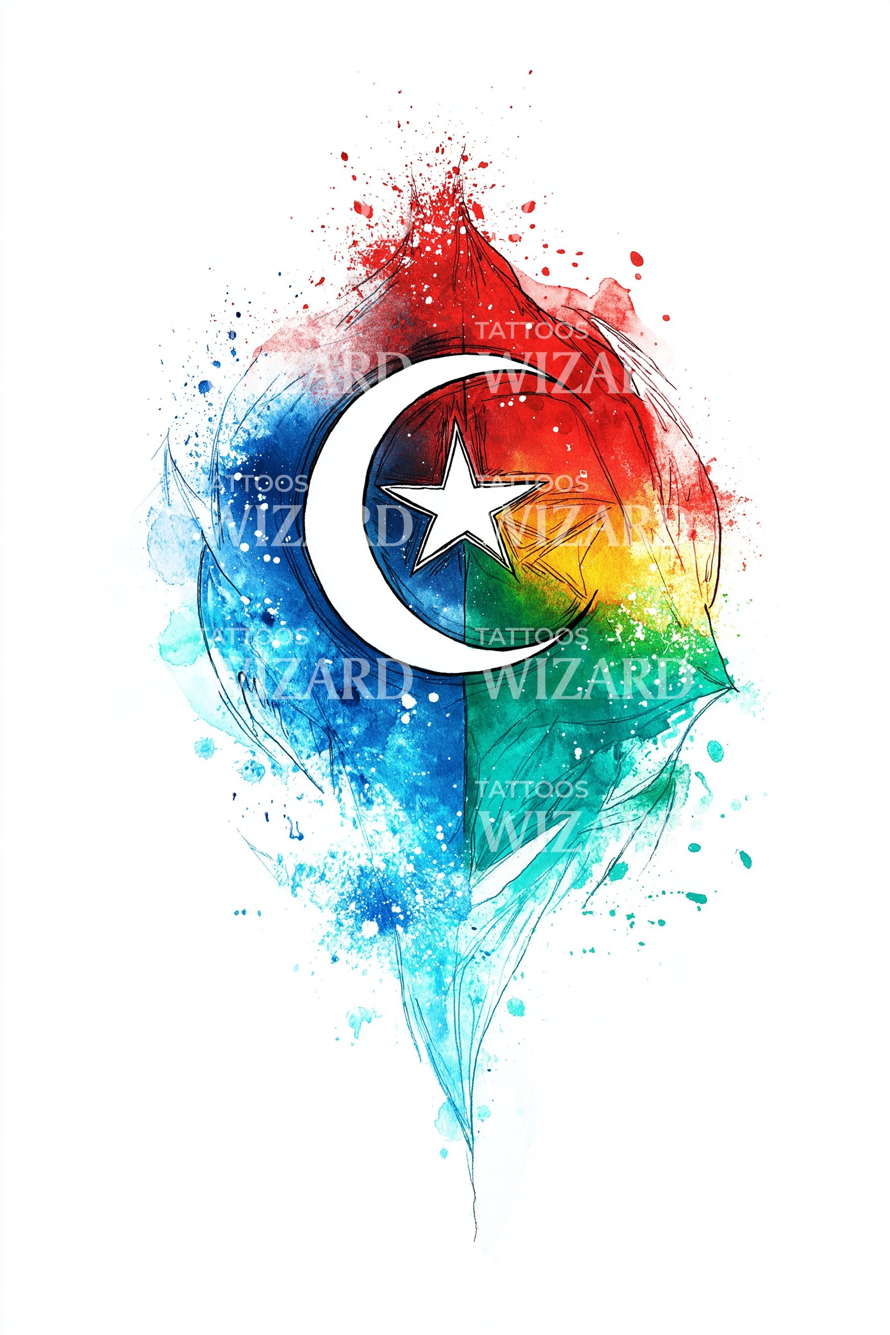 阿塞拜疆水彩新月纹身插图