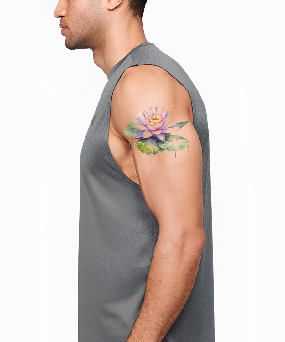 用我们水彩花卉纹身设计为您的肌肤浸润上生动的色彩。描绘出精致的睡莲,这件作品将水彩的柔和流畅之美与花卉图像的原始魅力相结合。以最艺术和惊艳的方式表达您对自然的热爱。