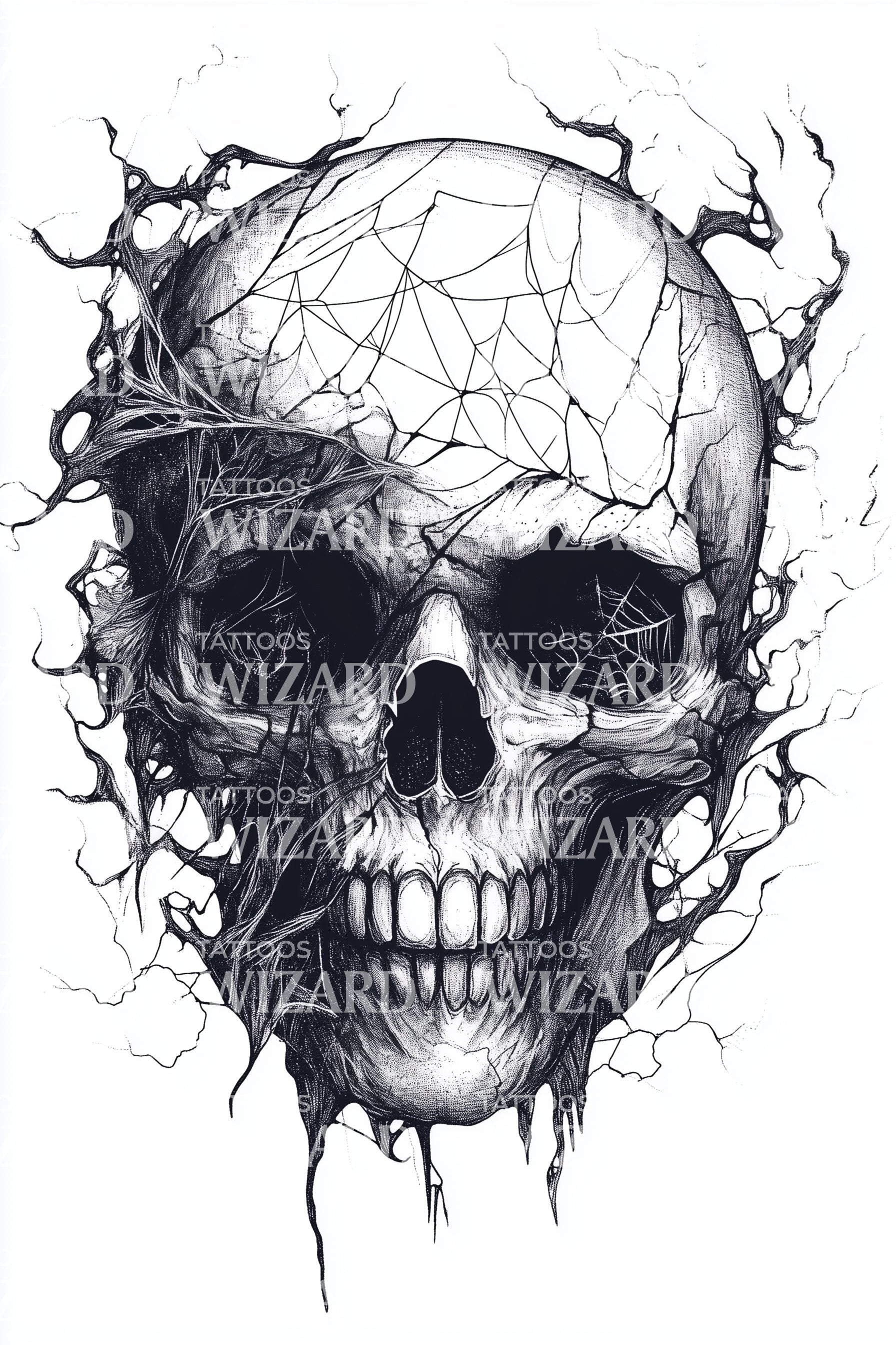 破碎网状骷髅纹身设计