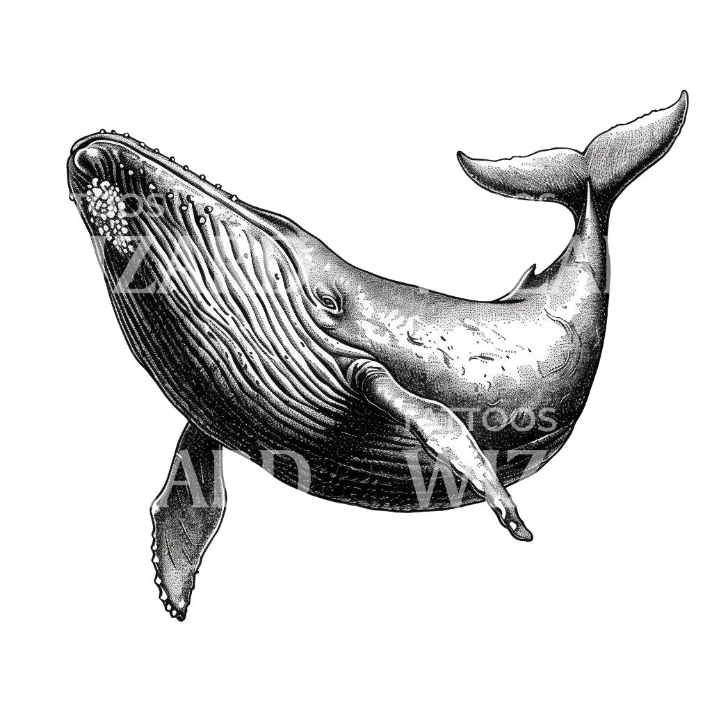 拥抱海洋的壮丽之美,这款黑灰色鲸鱼纹身设计。墨水素描描绘了一只优雅的鲸鱼,展现出复杂而迷人的细节。非常适合海洋爱好者,这个设计传达了对水生生命的深切尊重。