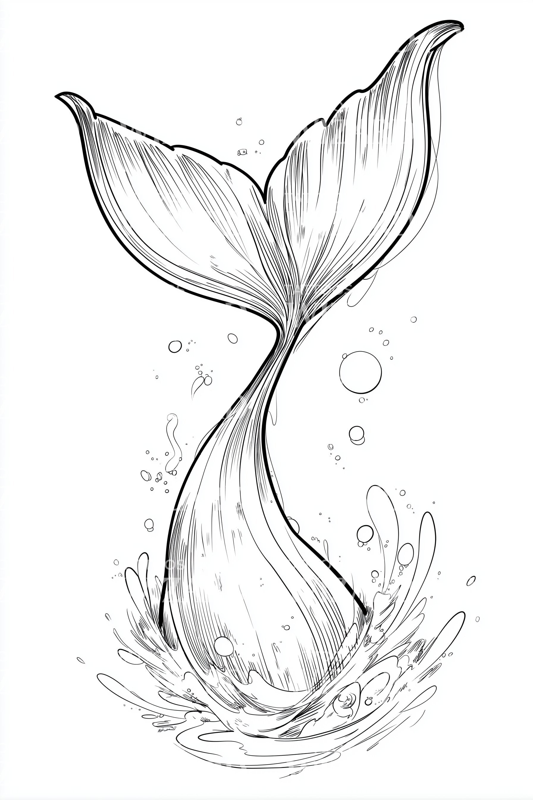 Ocean-washed watercolor arcs across skin: a sweeping whale tail rising through bubbles and splash, edges soft, pigment drifting like tide. Symbol of strength and freedom, it whispers of the sea’s path and new beginnings. Feels serene yet bold. Ideal on forearm or calf for vertical flow, spine for lift, ribs for intimate motion.