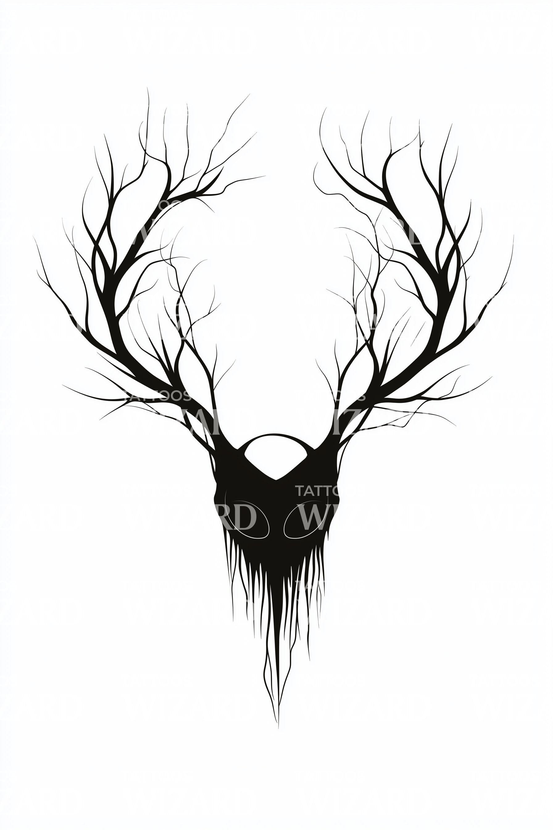 宽大鹿角面具纹身设计灵感