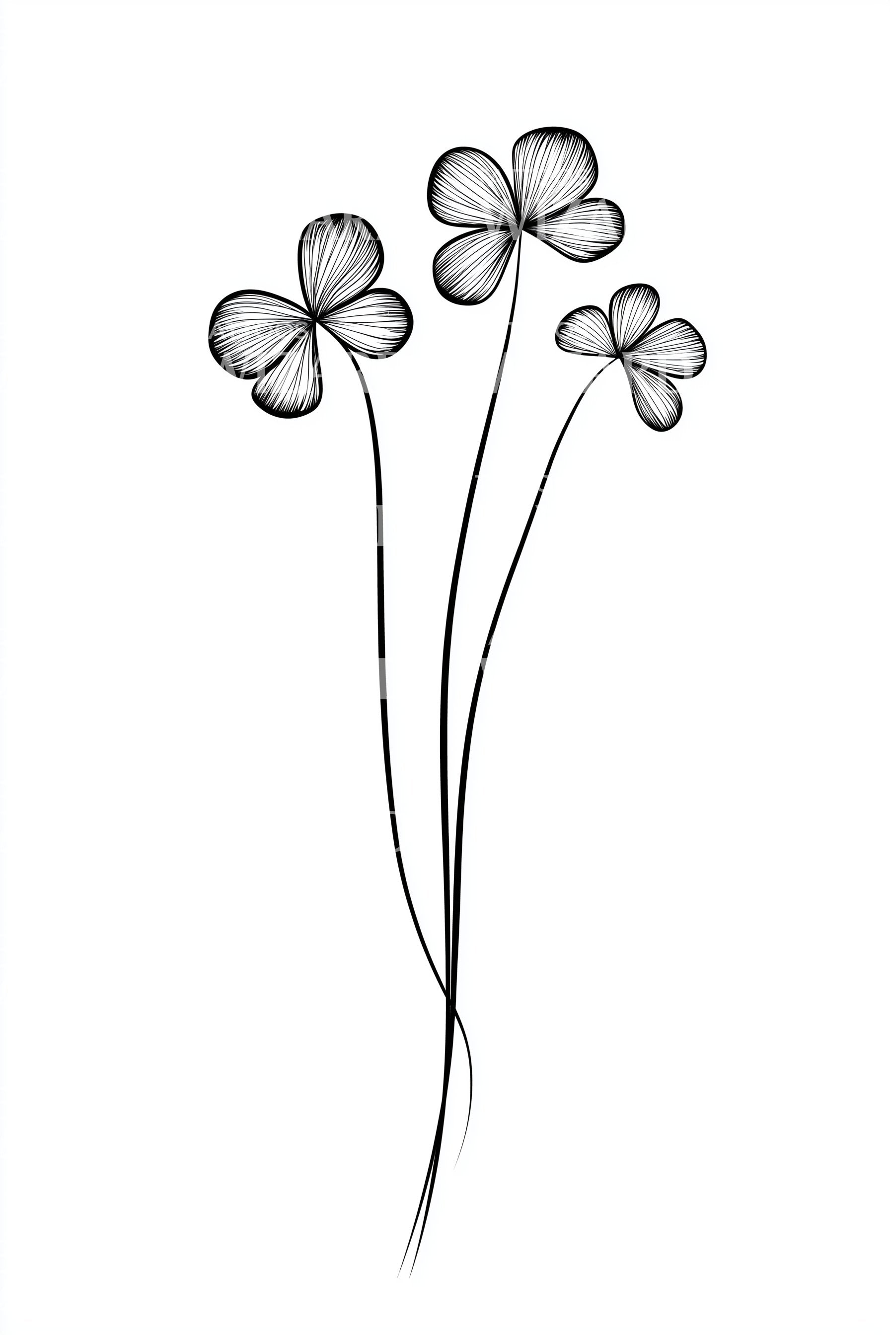 Wild clover in fineline grace, three slender stems lifting tiny trifoliate leaves in soft, minimal botanical shading. Symbols of humble luck, resilience, and nature’s quiet courage, the trio celebrates simple abundance and chosen connections. Worn small, it feels airy, delicate, and grounding, a whisper of freedom kept close.