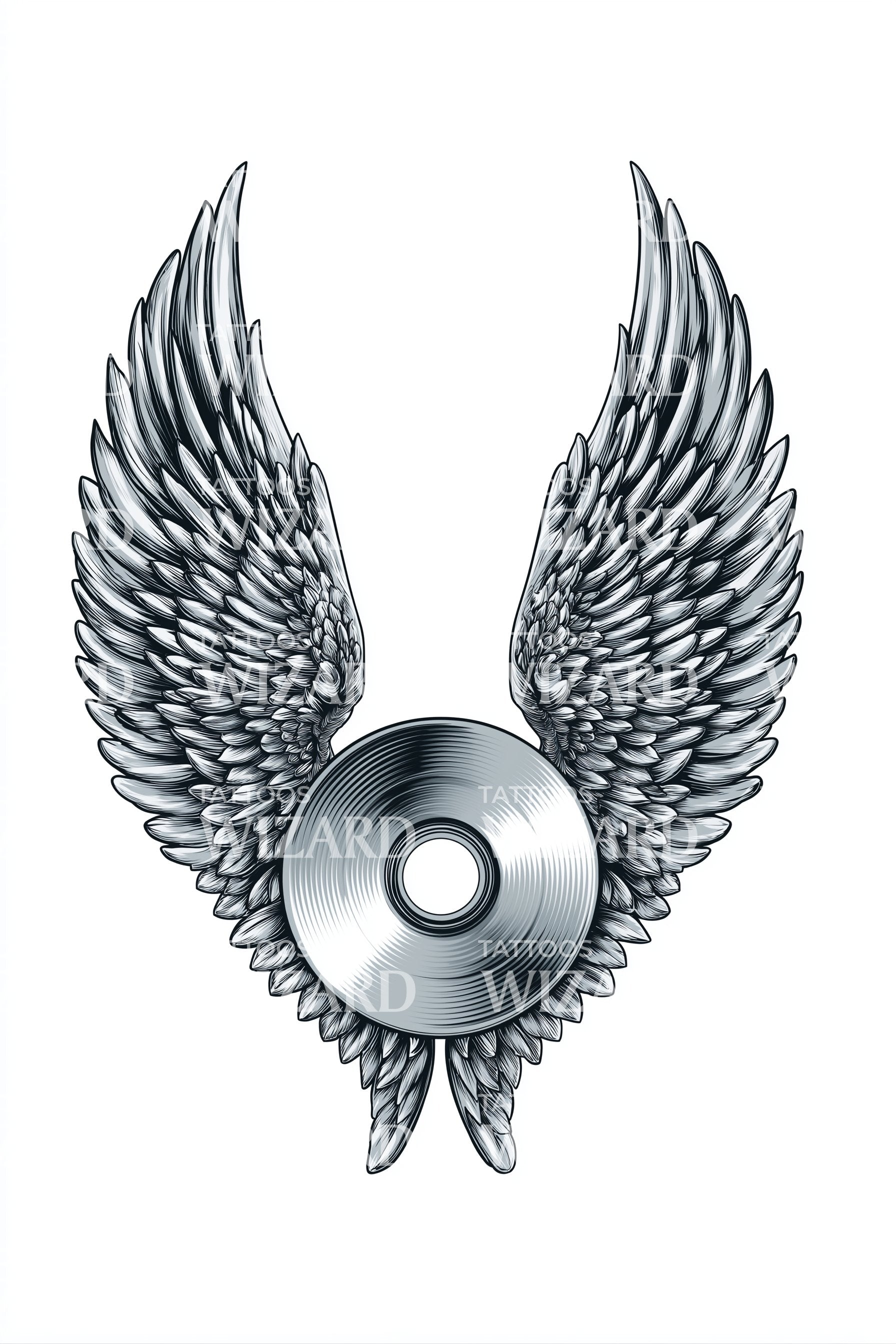Steel-feathered wings rise in precise realism, every barb shaded, embracing a polished metal halo. This emblem evokes an angelic guardian forged from grit and grace, protecting journeys while honoring scars. Wearing it feels like steady lift at your back, quiet courage, and relentless forward motion through each day.