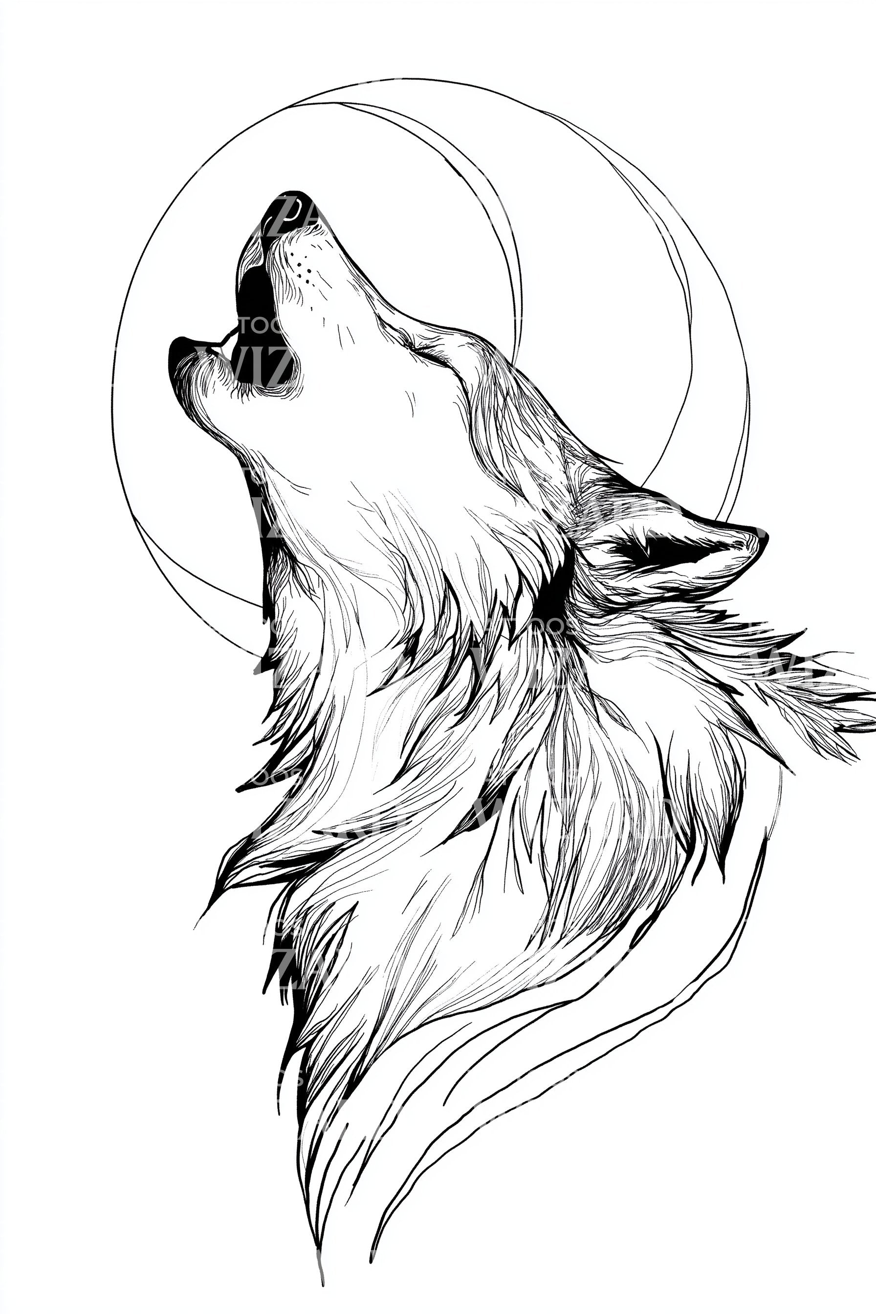 Black and grey linework captures a lone wolf mid-howl beneath the moon, fur flowing like wind. Symbol of wild intuition, loyalty, and guidance, it honors nature and spirit. Feels fierce yet centered. Ideal placements: forearm for sweep; calf for taper; upper arm/shoulder for wrap; ribcage following the curve.